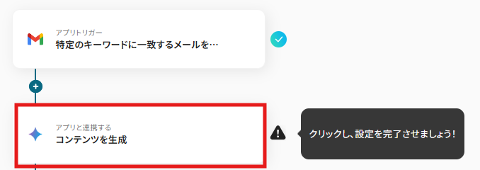 このフローでは、特定の条件に合致する問い合わせのみを対象として、Geminiが回答案を生成し、担当者のGmailへ通知します。