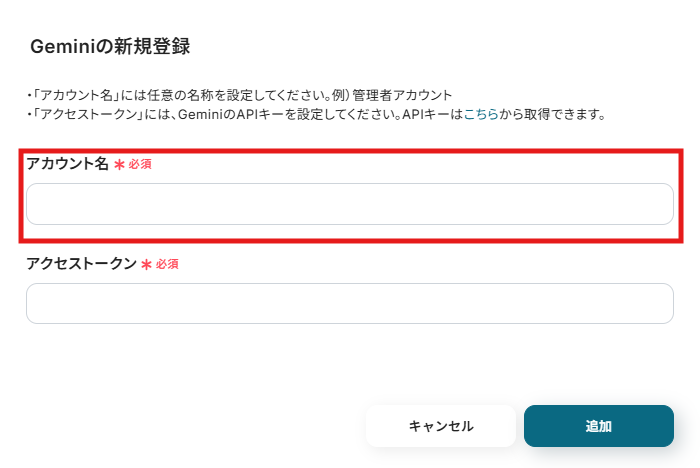 アカウント名は、会社名や担当者名など分かりやすいネーミングがおすすめです。
