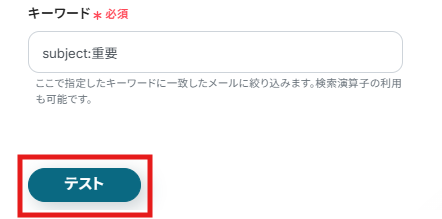 今回は「subject:」という演算子を使って、件名の単語やフレーズからキーワード「重要」に当てはまるメールを検索するように設定しました。