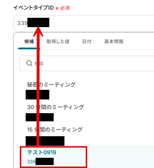 候補から、連携するカレンダーIDを選択してください。