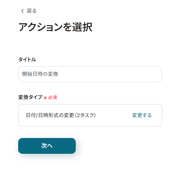 - トリガーアクションを確認して、「次へ」をクリック。