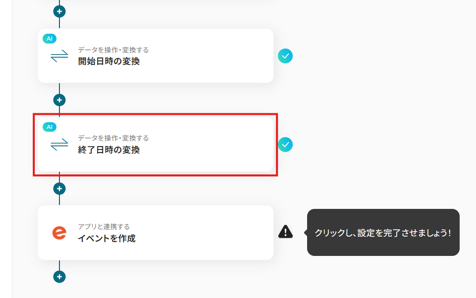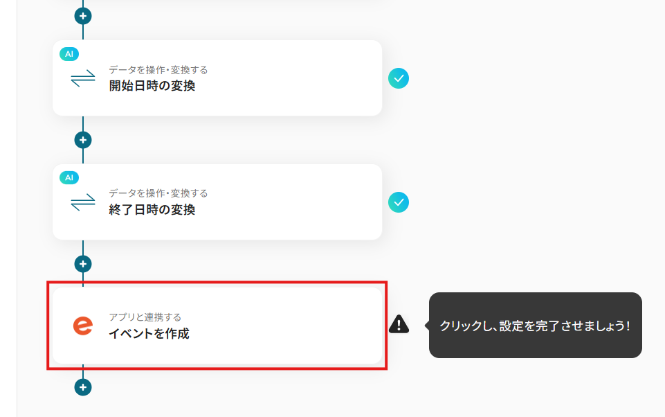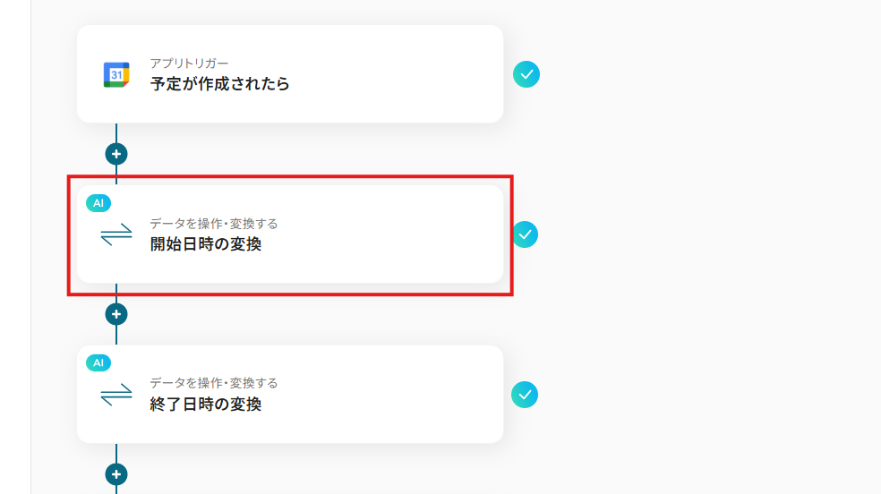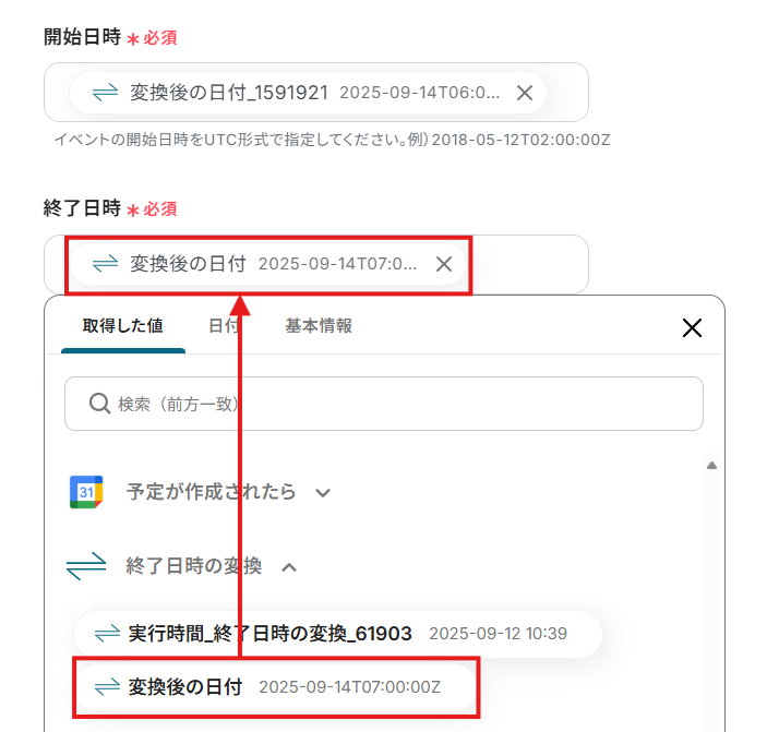 - Googleカレンダーのトリガー設定と各アクション(日付形式変換・イベント作成)の設定