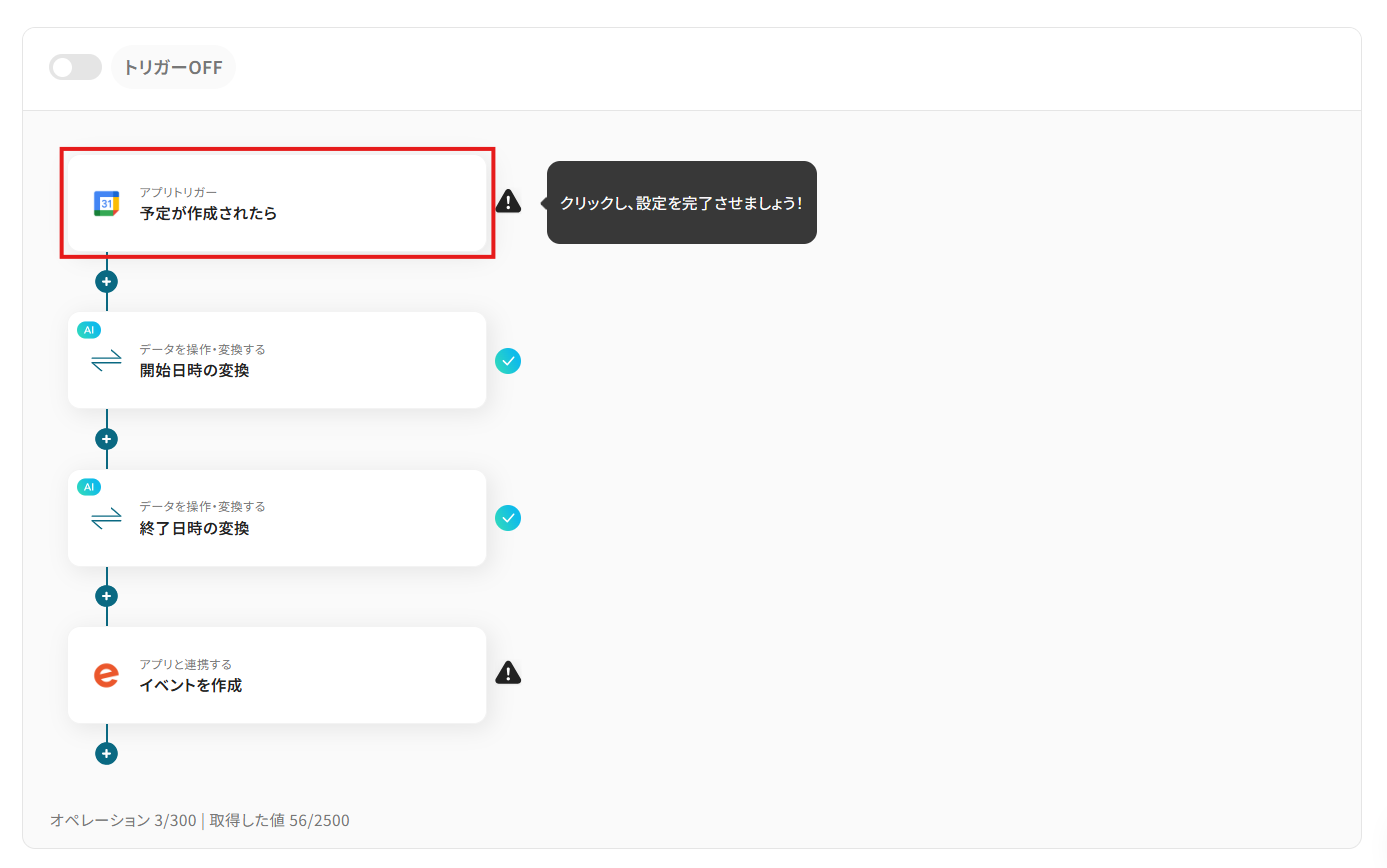 ステップ3:Googleカレンダーのトリガー設定