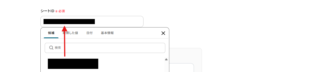 シートIDは、枠内をクリックし表示される候補から選択しましょう。