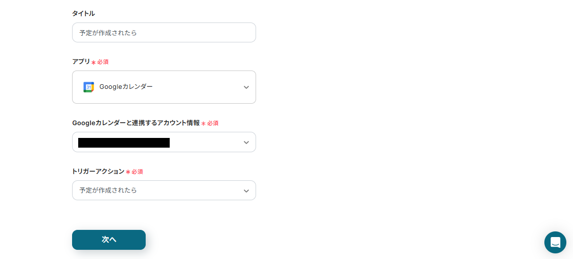 Googleカレンダーと連携するアカウントやトリガーアクションの内容に誤りが無いか確認できたら、次のページに進みましょう。