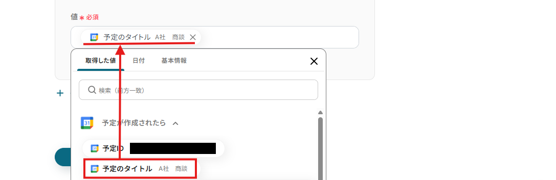 解説したテンプレートでは、タイトルのみを連携していますが、ステップ3のテストで取得したその他の値も業務にあわせて連携できます。