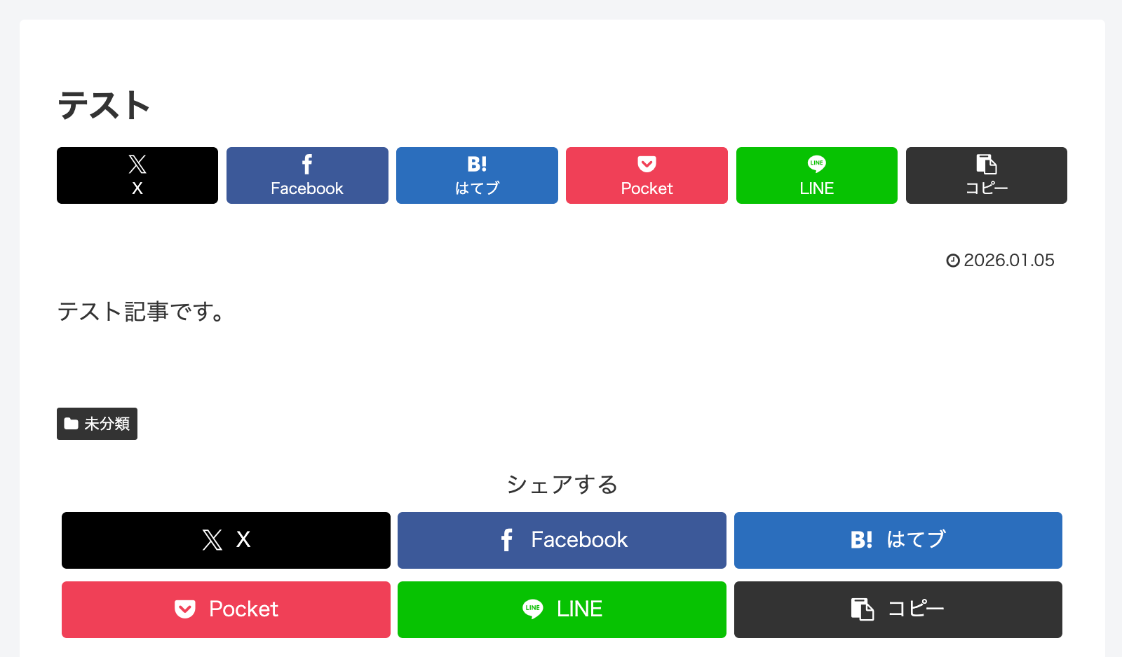 入力が完了したら「テスト」をクリックして、設定した内容で新規投稿(下書き)が作成されるか確認してみましょう。