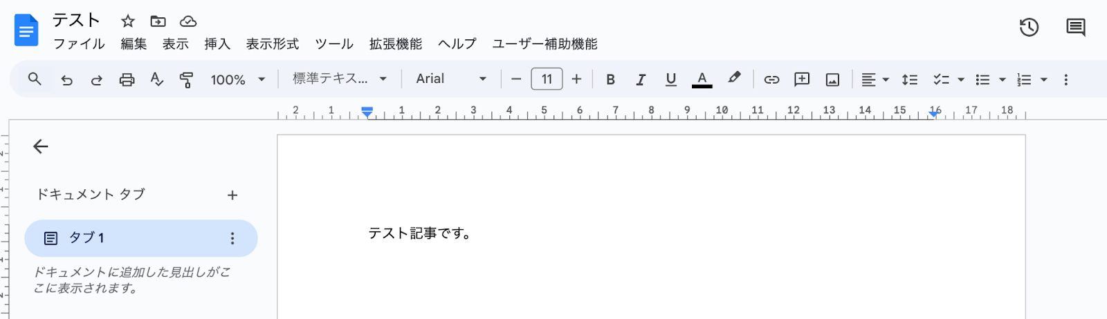 事前準備としてGoogleドキュメントで記事の内容を作成しておきましょう。 今回はテスト用に、以下の内容で作成しました。