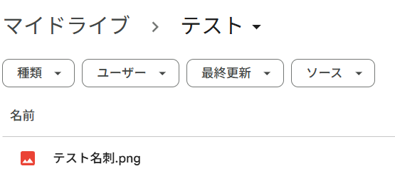 今回は例として、以下のテスト用の名刺ファイルをGoogle Driveにアップロードしました。