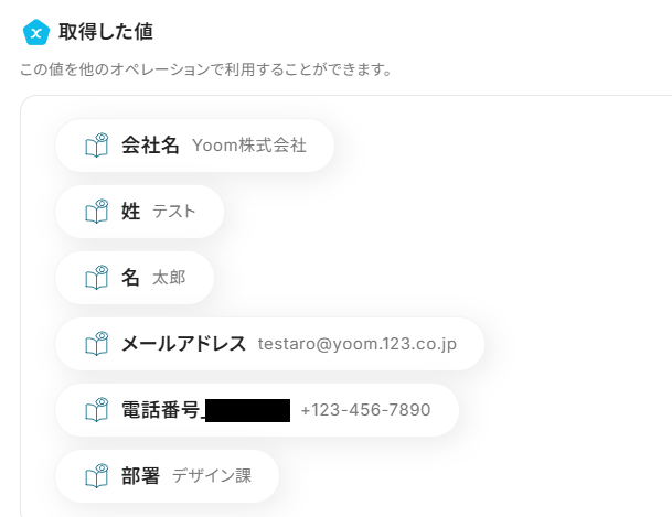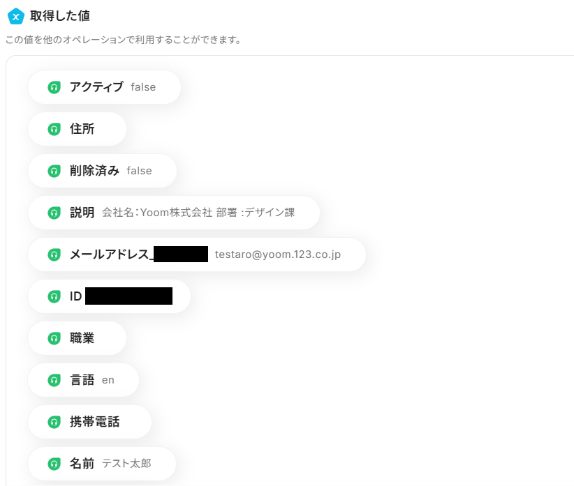Yoomでは、テストを実行した際に取得できる情報のことを「取得した値」と定義しています。