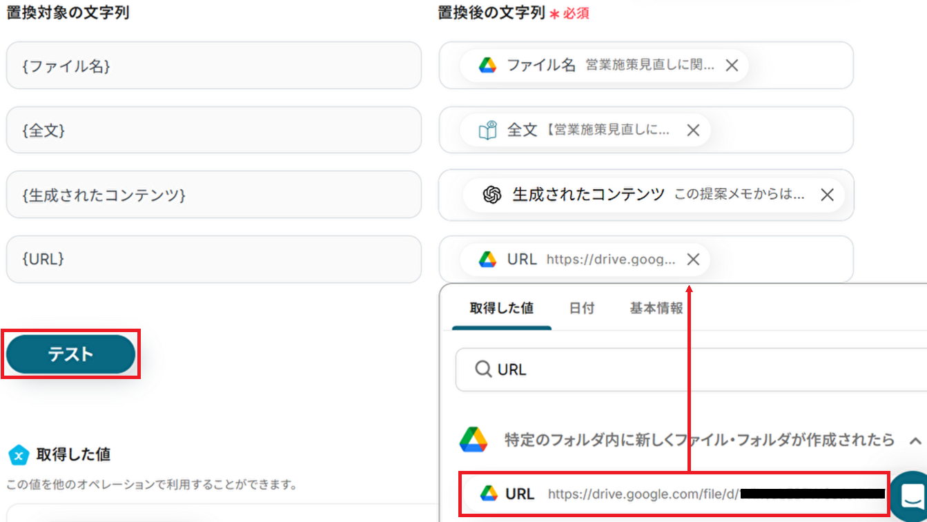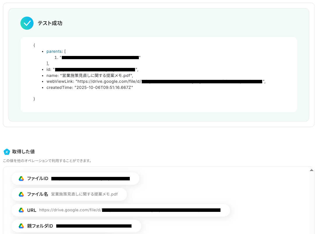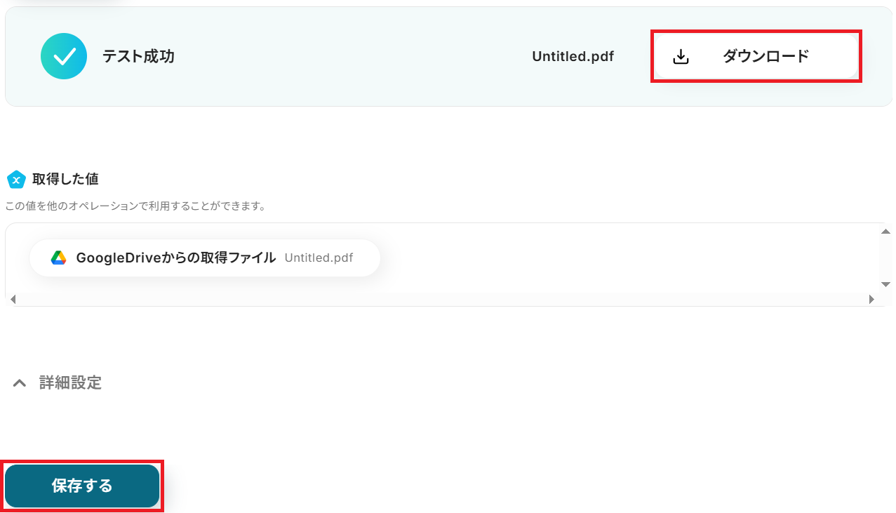 ファイルIDの欄にはGoogle Driveの「ファイルID」の値が予め入力されているので、そのままテストしましょう。