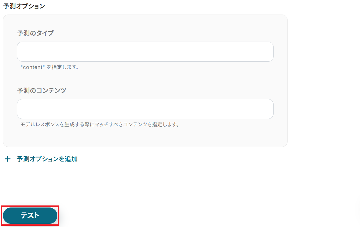 ・メッセージ内容:①で取得した問い合わせ内容などのテキストを埋め込み、以下のような判定を指示します。