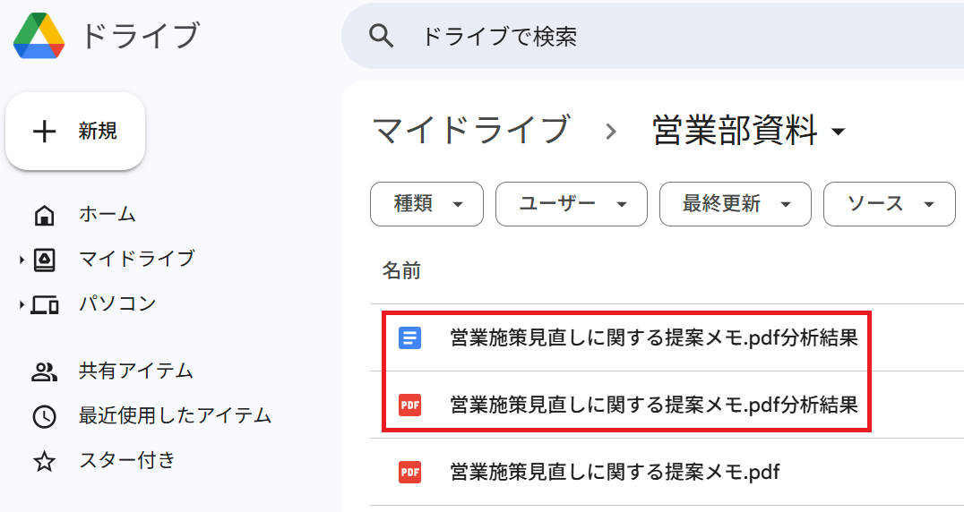 準備として、Google Driveの特定フォルダにテスト用ファイルをアップロードしてください。