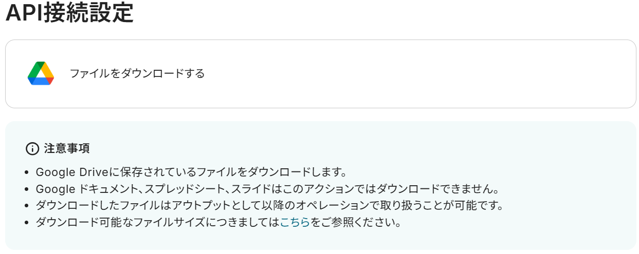 ・GoogleDriveのオペレーションで連携するアカウント情報の設定が必要です。