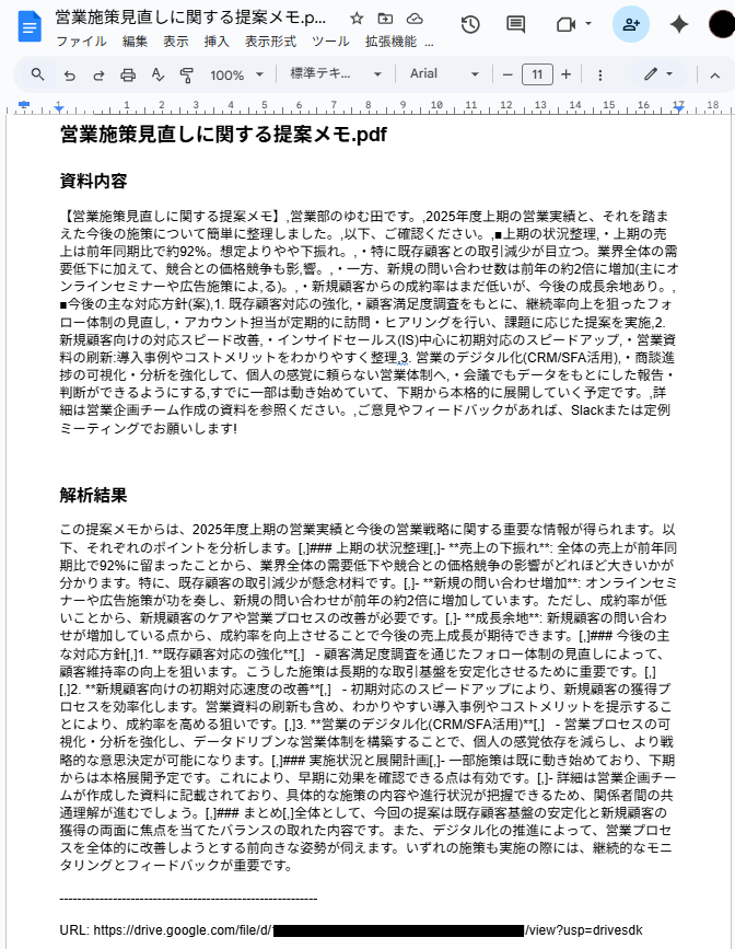 「Google Driveにアップロードした書類の内容を、毎回手動でOpenAIに貼り付けて分析している…」