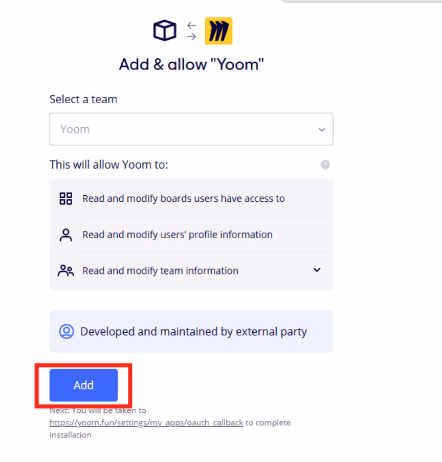 以下の画面で「Select a team」を選択し、「Add」をクリックします。