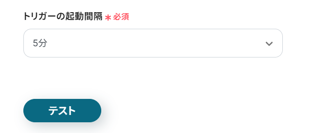 ご契約のプラン によって最短の起動間隔が異なります。 トリガーの起動タイミングは、5分、10分、15分、30分、60分のいずれかで設定できます。 なお、基本的にはそのプランの最短の起動間隔にしてお使いいただくことをおすすめします。