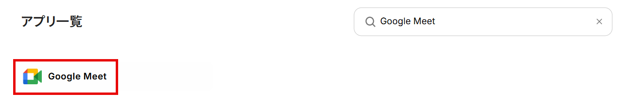 マイアプリから「新規接続」を押した後、Google Meetを検索し、クリックしてください。