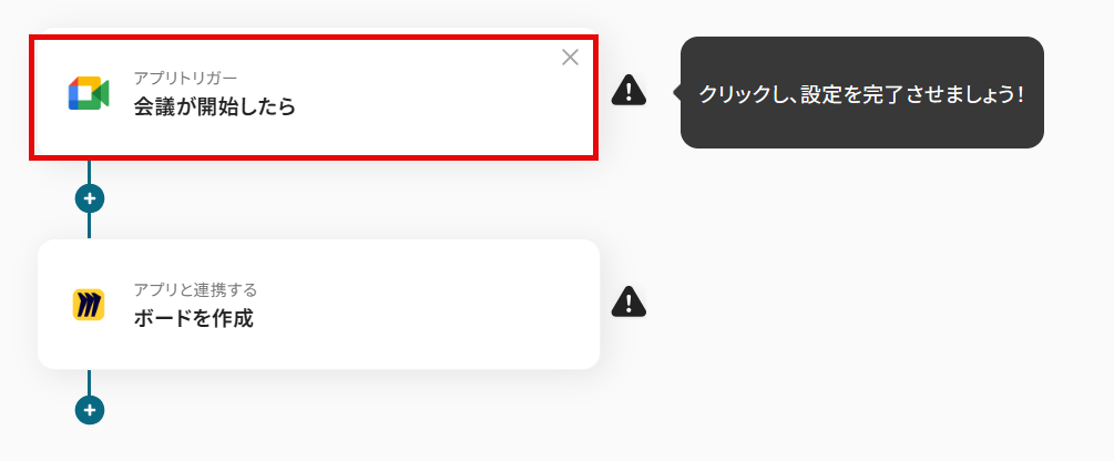 今回はGoogle Meetで会議が開始したら、Miroにボードを作成するフロー を作成していきます! 作成の流れは大きく分けて以下です。
