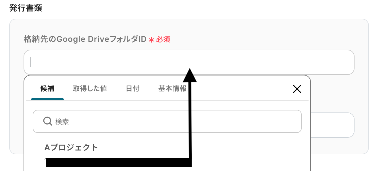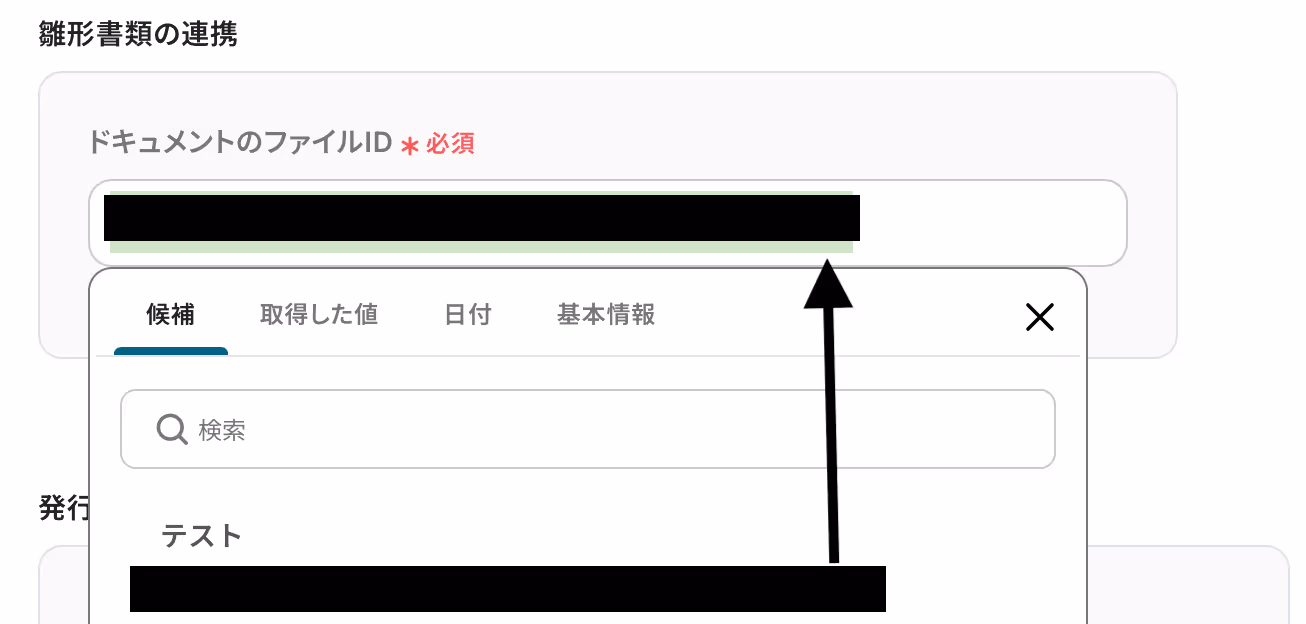 入力欄をクリックすると下記のように候補が表示されるので、対象のファイルIDを選択してください。