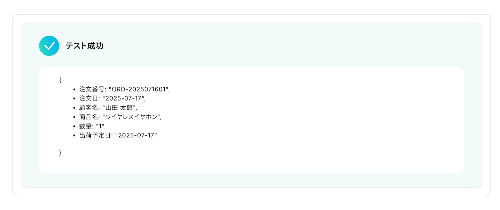 このテストにより取得した値=アウトプットを用いて、次のステップでGoogleドキュメントにデータを連携することが可能です。
