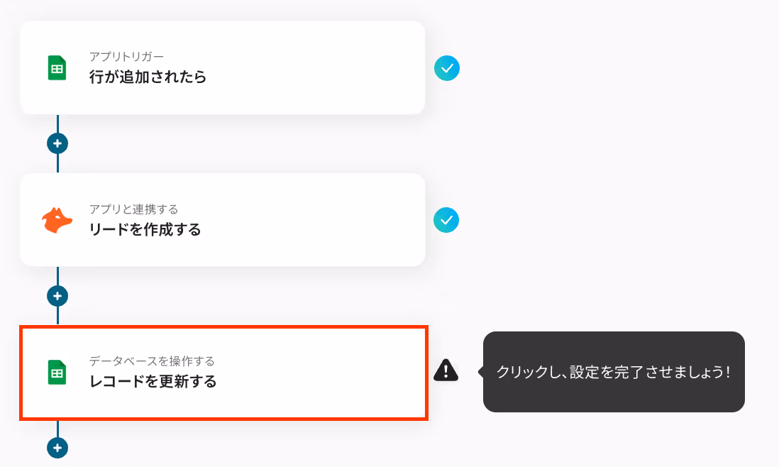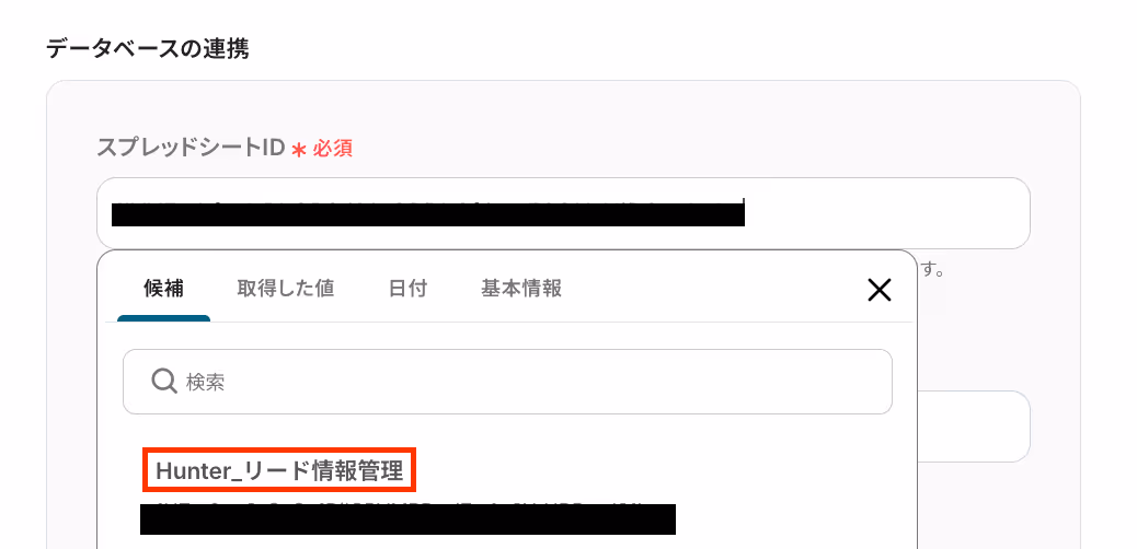 最後に、ステップ4で作成したHunterのリードIDを、Google スプレッドシートに追加する設定を行います。