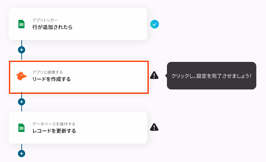 続いて、Google スプレッドシートに追加されたリード情報を基に、Hunterにリードを作成する設定を行います。