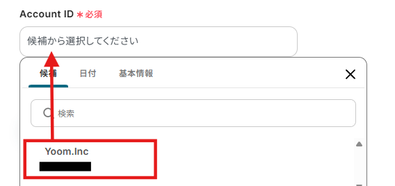 Account IDは表示される候補から選択しましょう。