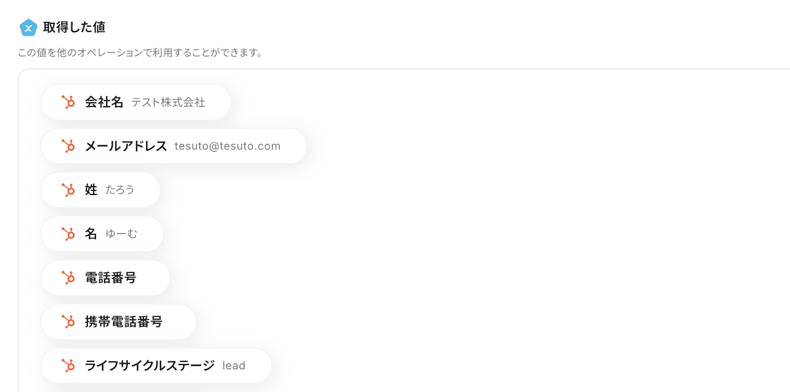 テストが成功し、HubSpotの取得した値に追加されたら保存しましょう。
