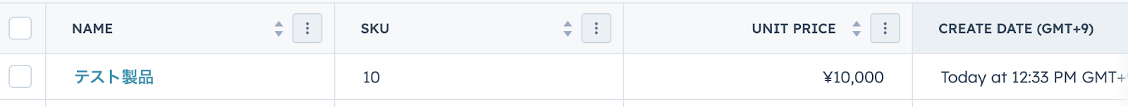 設定完了後は動作確認のためにテストを行うので、HubSpotの画面に移り、テスト用に新しく製品を作成しましょう!