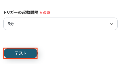 入力が完了したら、設定内容とトリガーの動作を確認するため「テスト」をクリックします。