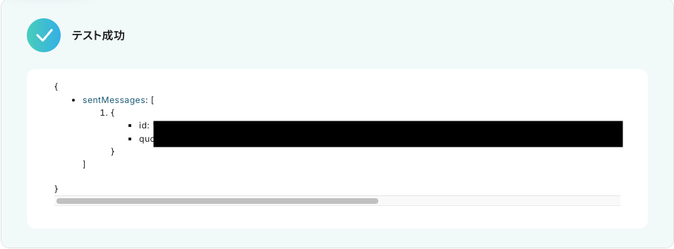 入力が完了したら「テスト」をクリックし、設定した内容でメッセージが正しく送信されるか確認してみましょう。