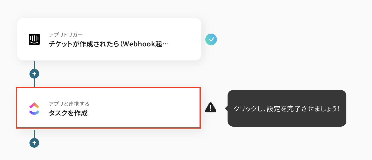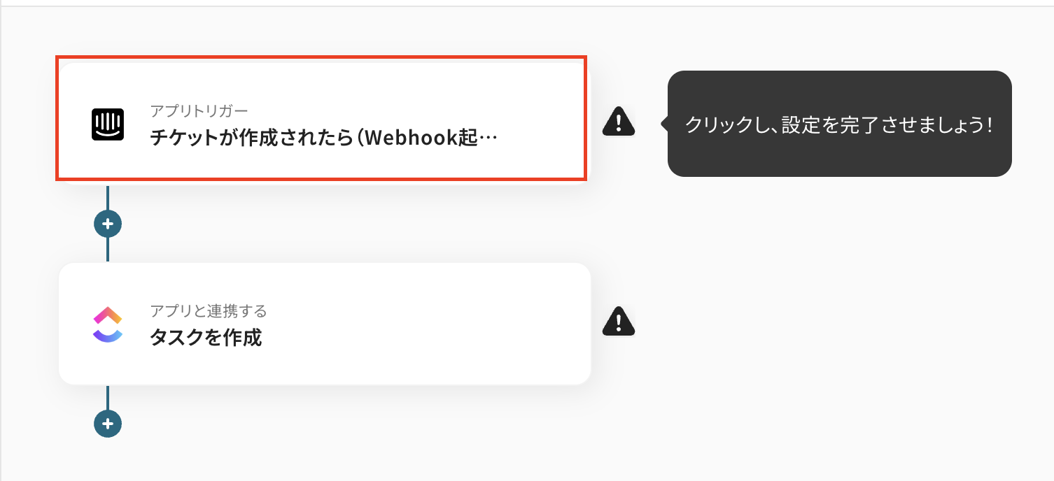 先ほどコピーしたテンプレートの「チケットが作成されたら(Webhook起動)」をクリックしてください。