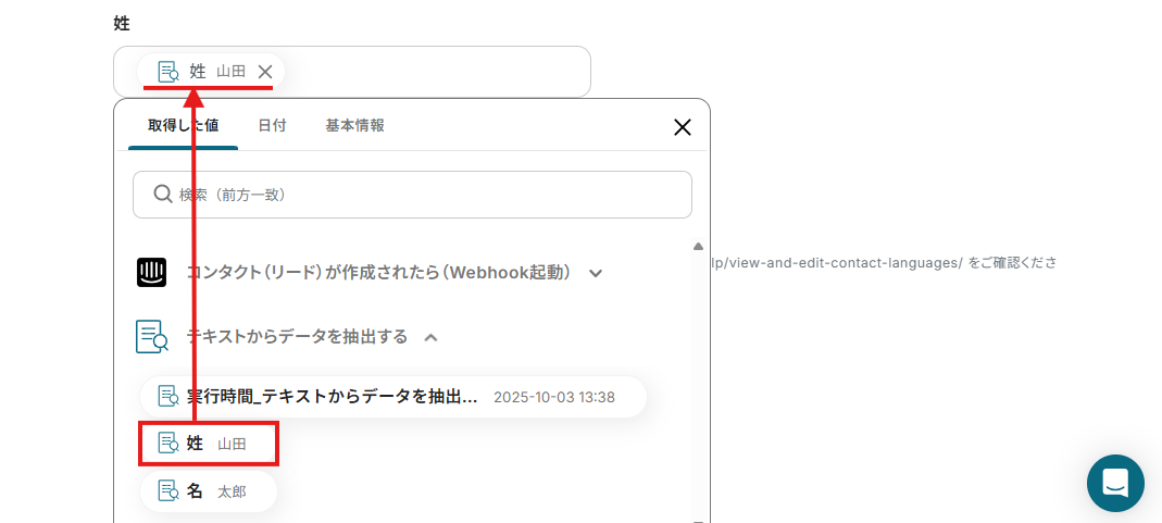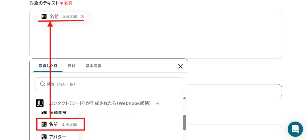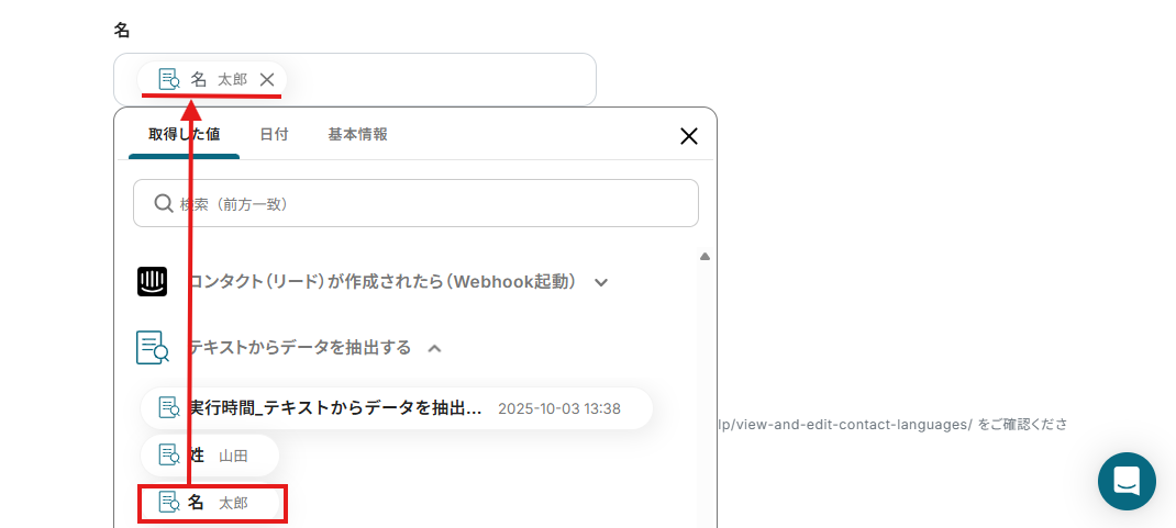 この設定により、Intercomで作成したコンタクトの名前情報を自動的に取得し、抽出対象のテキストとして指定できます。