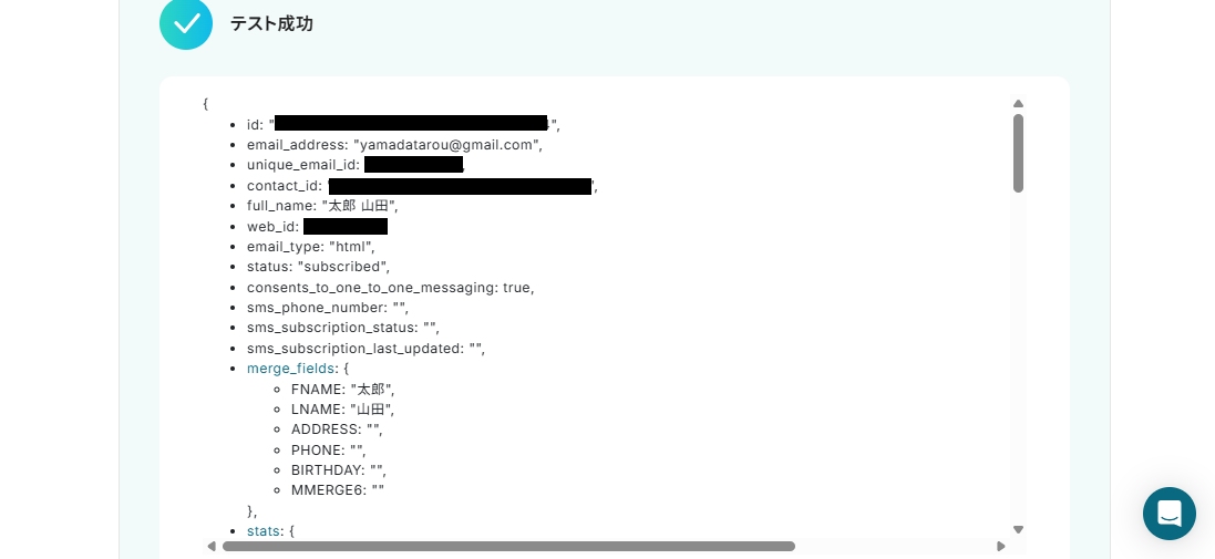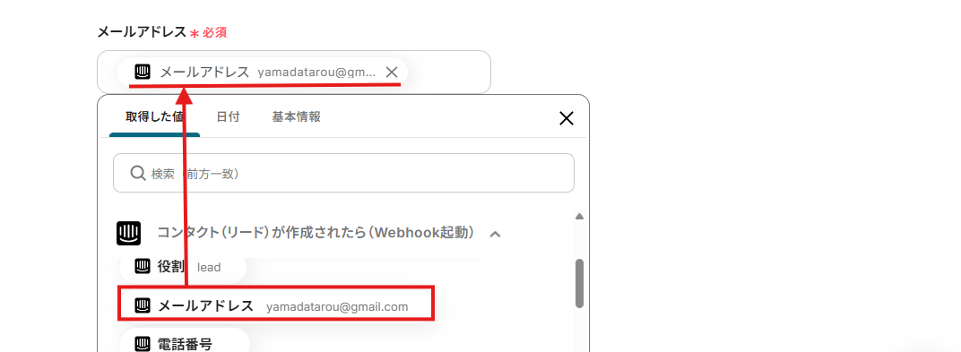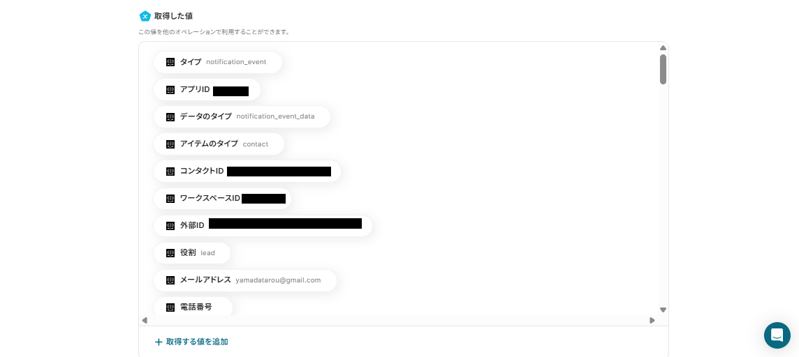 登録したコンタクト(リード)の内容が取得した値に反映されます。正確に取得されているかどうかを確認しましょう。