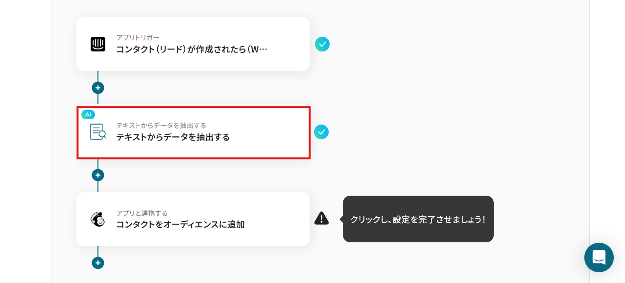 そのため、AI機能を活用してコンタクト(リード)からデータを抽出する設定を行いましょう。