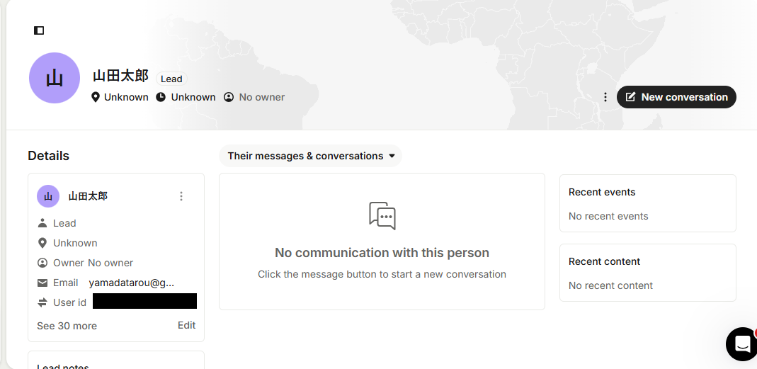 Intercomでテスト用のリードを新規作成してください。(ダミーの情報で大丈夫です。)