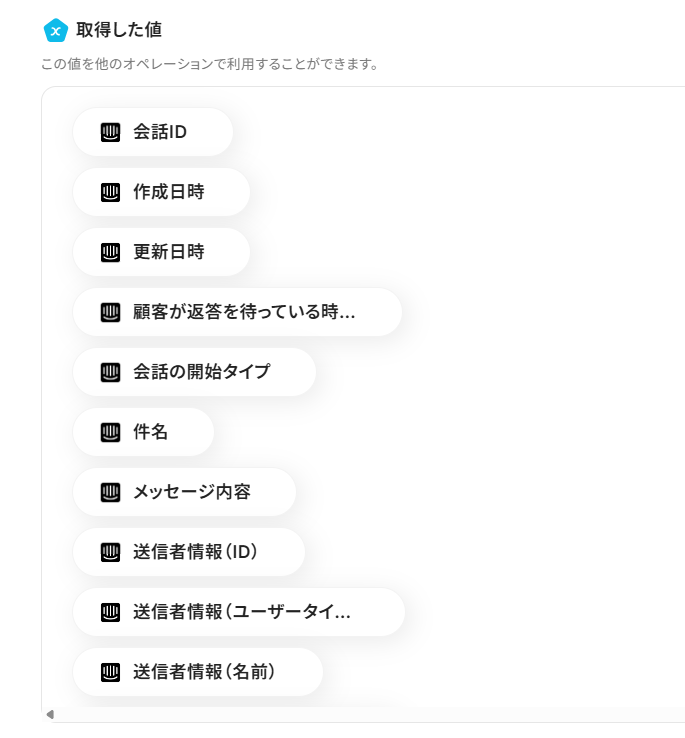 取得した値は、後続のオペレーション設定時の値としてご利用いただくことができ、フローボットを起動する度に、変動した値となります。