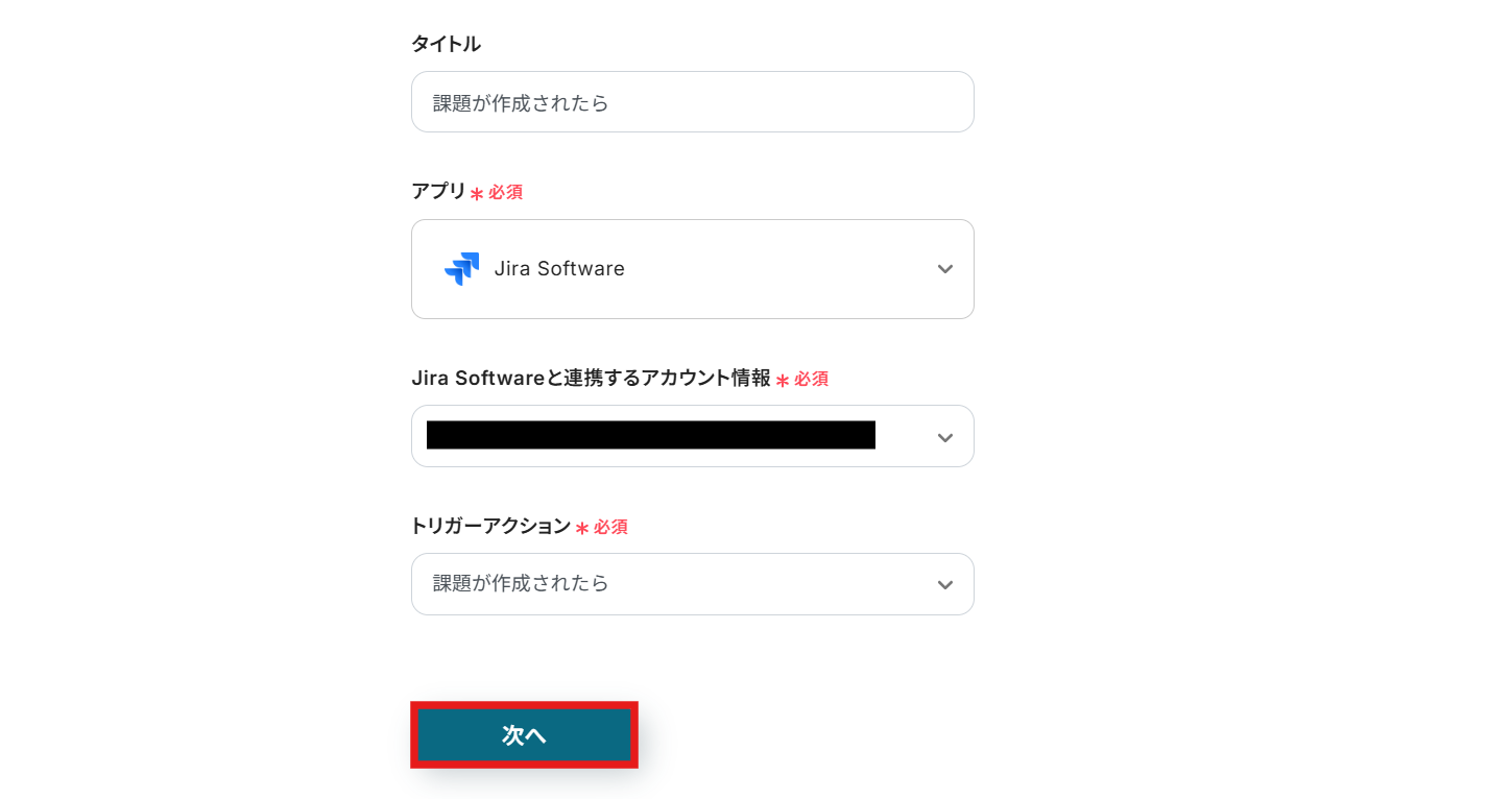 ステップ3:Jira Softwareで課題が作成されたら起動するトリガーの設定