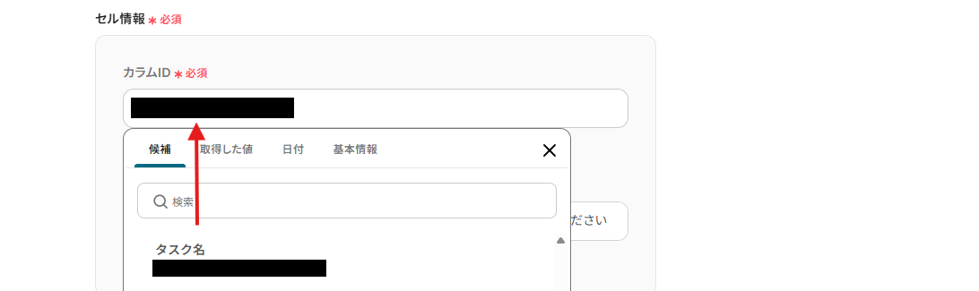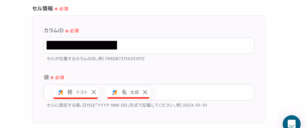 カラムIDは、候補からJotformのフォームの回答を自動登録したいカラムを選択してください。