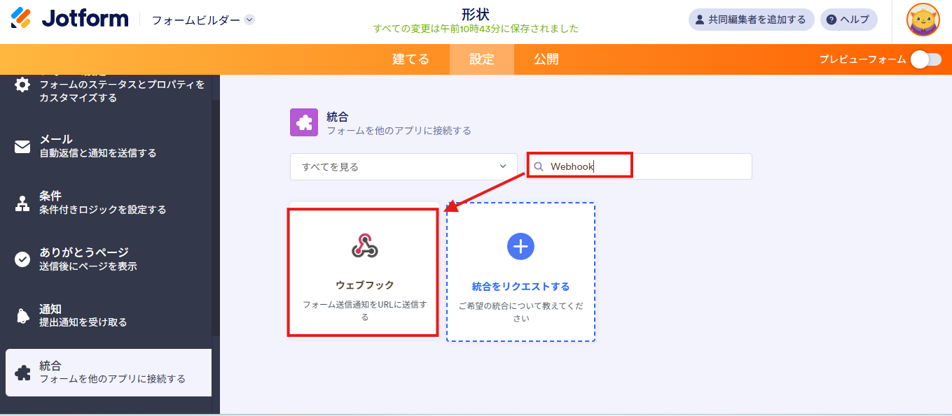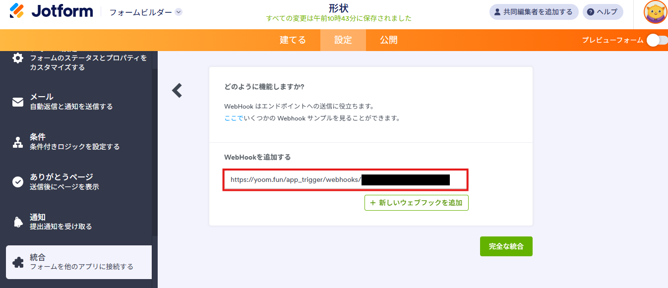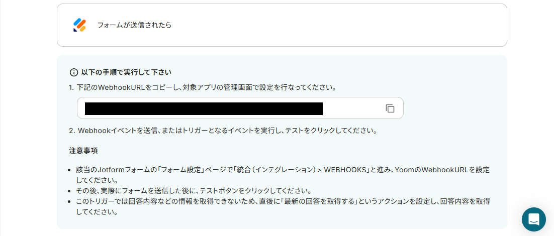 まずは、WebhookURLをコピーしこちらからJotformにアクセスしましょう。