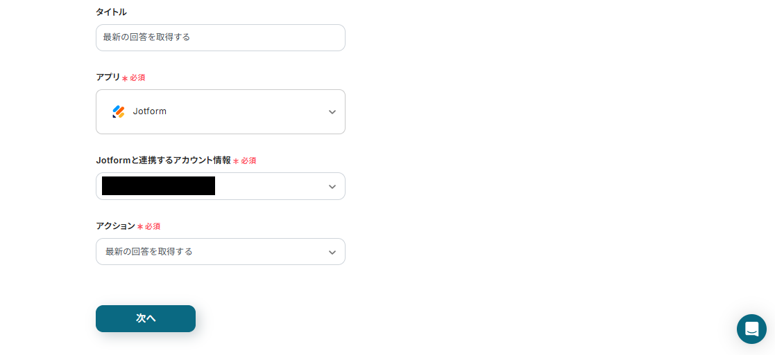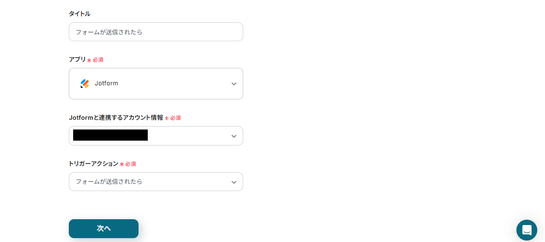 ステップ3:Jotformでフォームが送信されたら起動するのトリガー設定