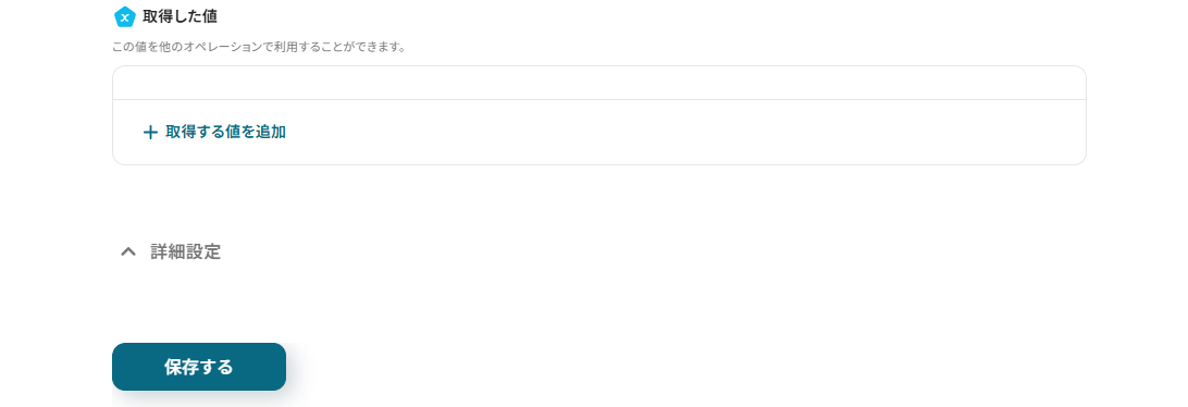 取得した値の一番下にある「+取得した値を追加」ボタンを押します。