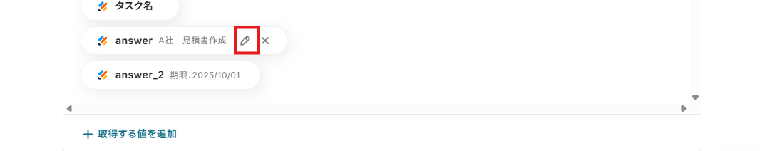 取得した値に追加で情報が表示されるので、ペンマークをクリックします。