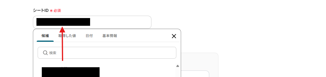 シートIDは、枠内をクリックし表示される候補から選択しましょう。