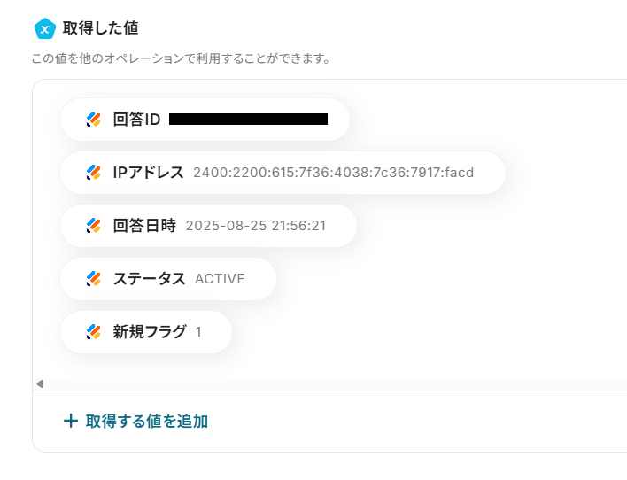 - 続いて、オペレーションでJotformの「最新の回答を取得する」アクションを設定し、送信されたフォームの内容を取得します。