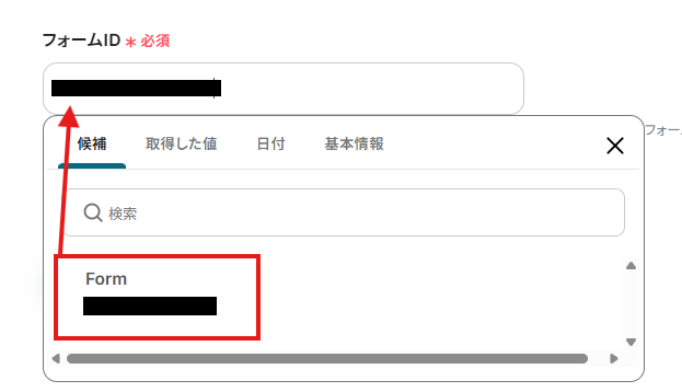- Jotformで「最新の回答を取得する」アクションを設定する際に、対象となるフォームIDをYoomの候補から正しく選択してください。