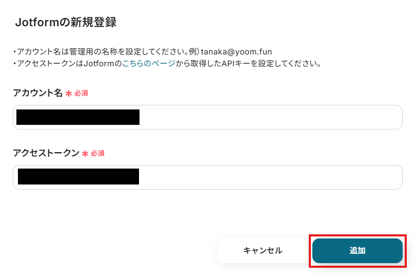 JotformとWordPressをYoomに接続するためのマイアプリ登録を行いましょう。