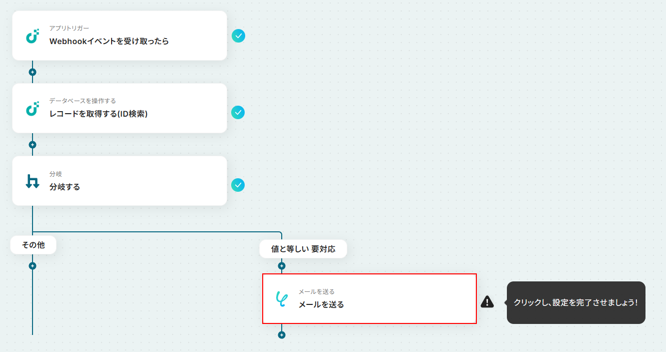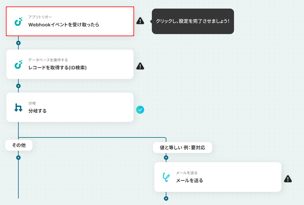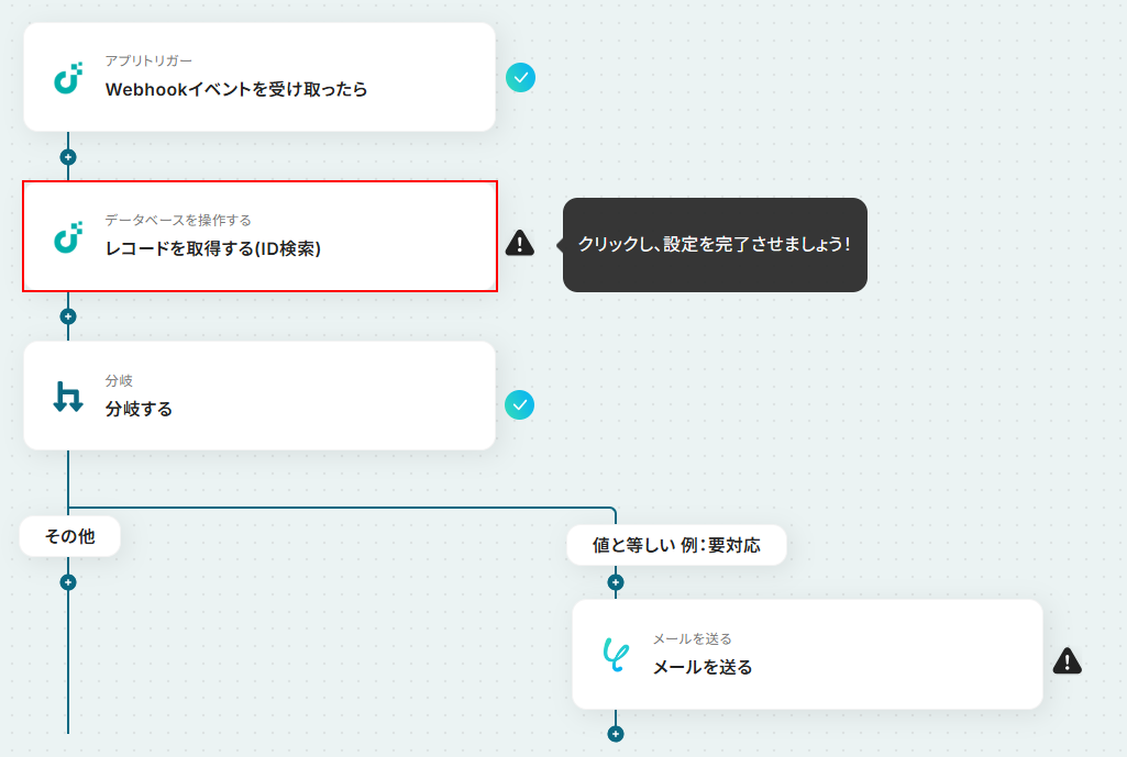 今回は要対応と記載されているレコードのみ処理を行いたいため、以下のように設定しました。