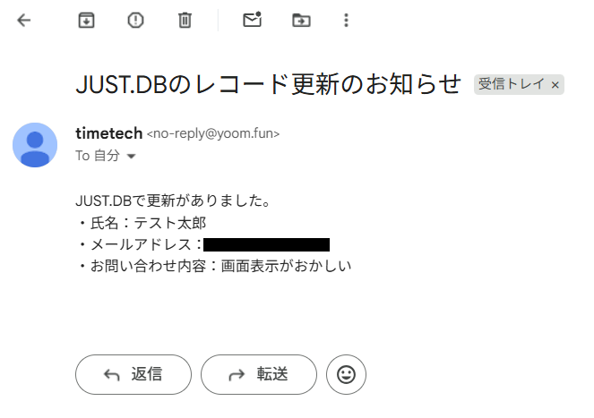 以上がJUST.DBのWebhookイベントをトリガーに、該当のレコード情報を担当者へメールで自動通知するフローでした!